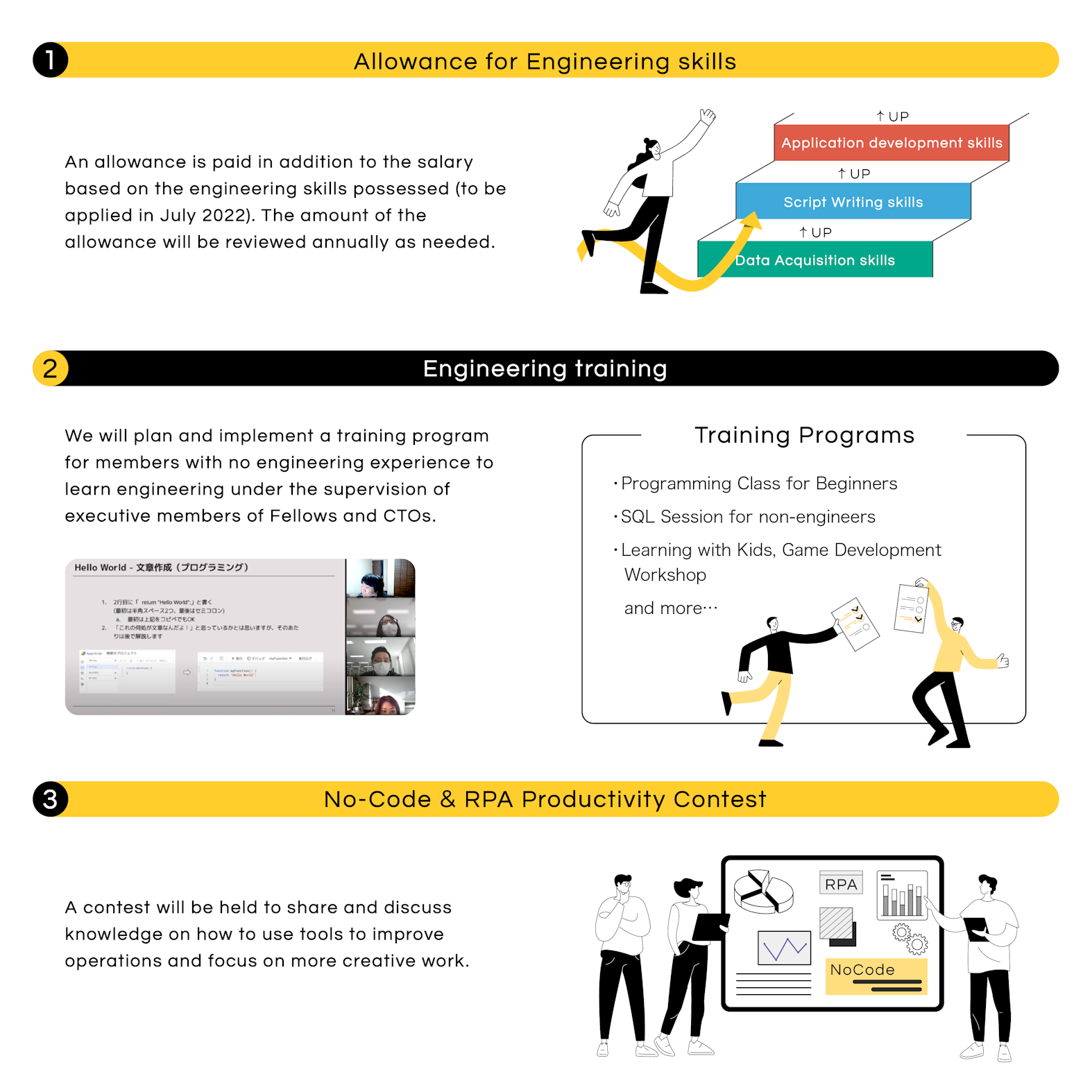 For the first measures in the Project, Uzabase will start an engineering support program that is designed to enable all members to engage with engineering. Other measures to follow the engineering support program will be announced once details are decided.