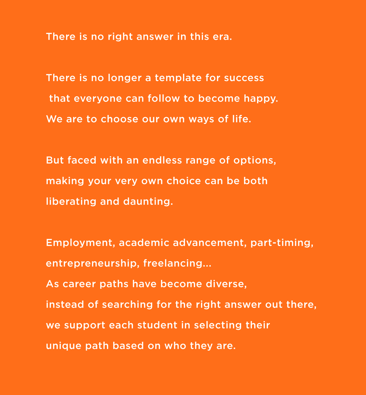 While individual lifestyles are becoming increasingly diverse, and students have an expanded range of choices for their careers, many students struggle to decide on what is the path best suited for themselves.