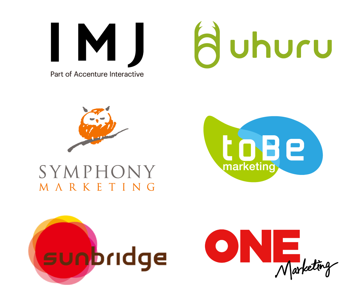 株式会社アイ・エム・ジェイ、株式会社ウフル、株式会社サンブリッジ、シンフォニーマーケティング株式会社、toBeマーケティング株式会社、ワンマーケティング株式会社など(五十音順)。