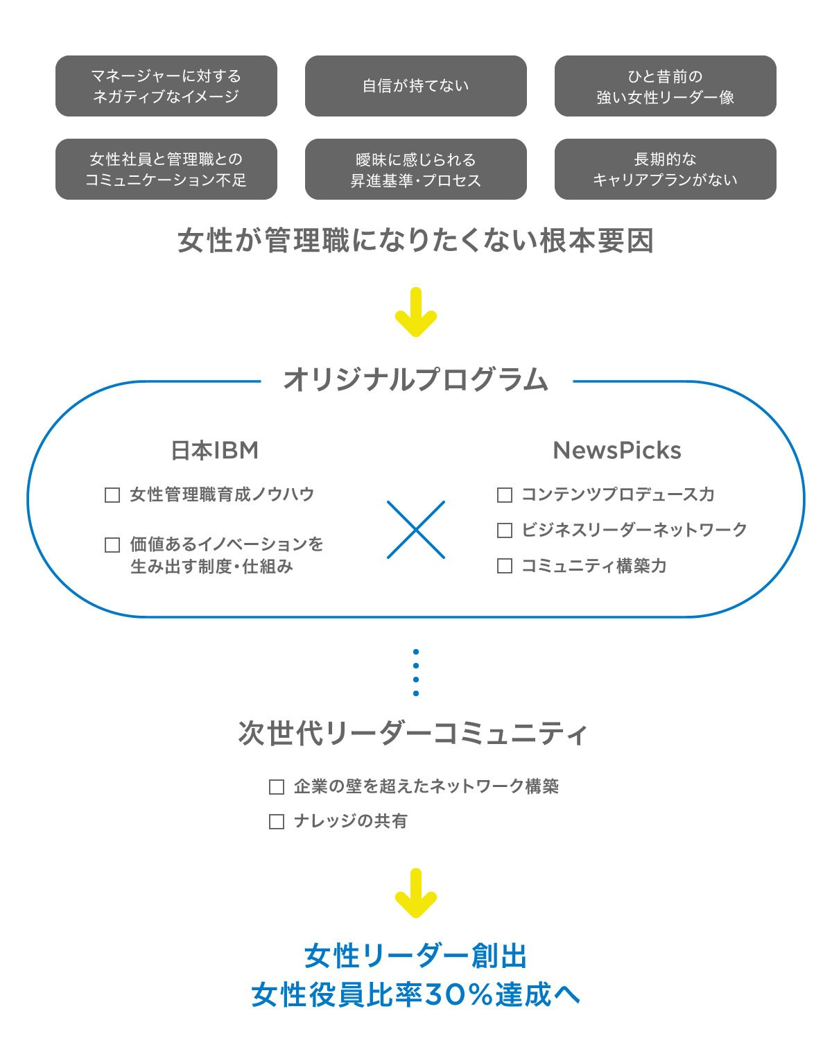 株式会社ニューズピックス(以下、NewsPicks)と日本アイ・ビー・エム株式会社(以下、日本IBM)は、経団連が提唱する、「役員に占める女性役員比率を2030年までに30%にする」目標の実現に向け、女性管理職の裾野を拡大させることを優先目標とし、女性向けリーダーシップ開発プログラムの提供を2022年春より開始することを発表いたします。