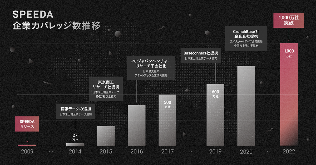 株式会社ユーザベースが提供する経済情報プラットフォーム「SPEEDA」は、情報を格納する企業数が1000万社を超えましたのでお知らせいたします。