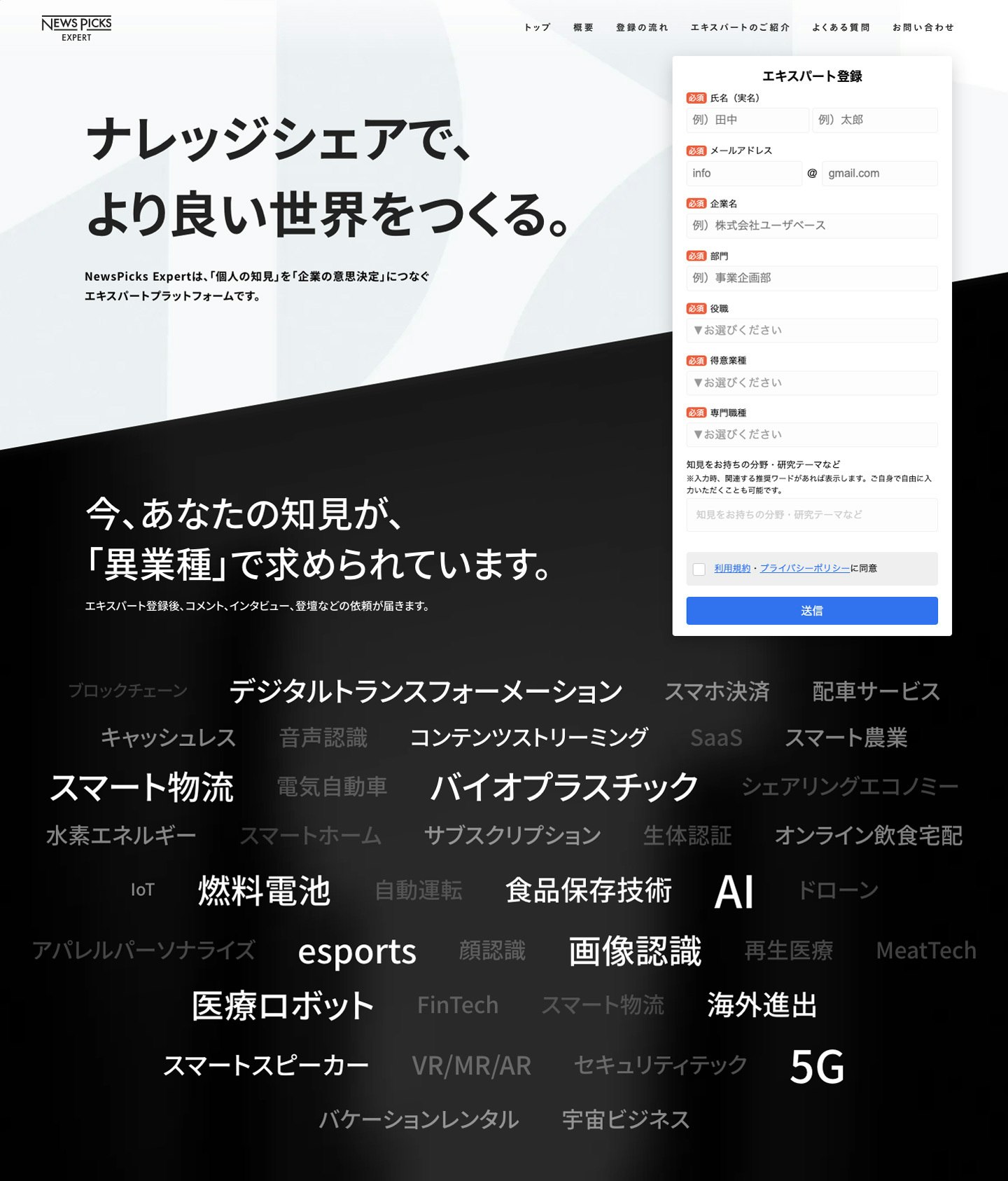 「30秒で登録」できるように仕組みやフォームを改良しました。エキスパート活動にご関心がある方にはまず30秒で登録いただいた後、ご都合の良いタイミングで職歴や専門分野の情報を補足いただきます。