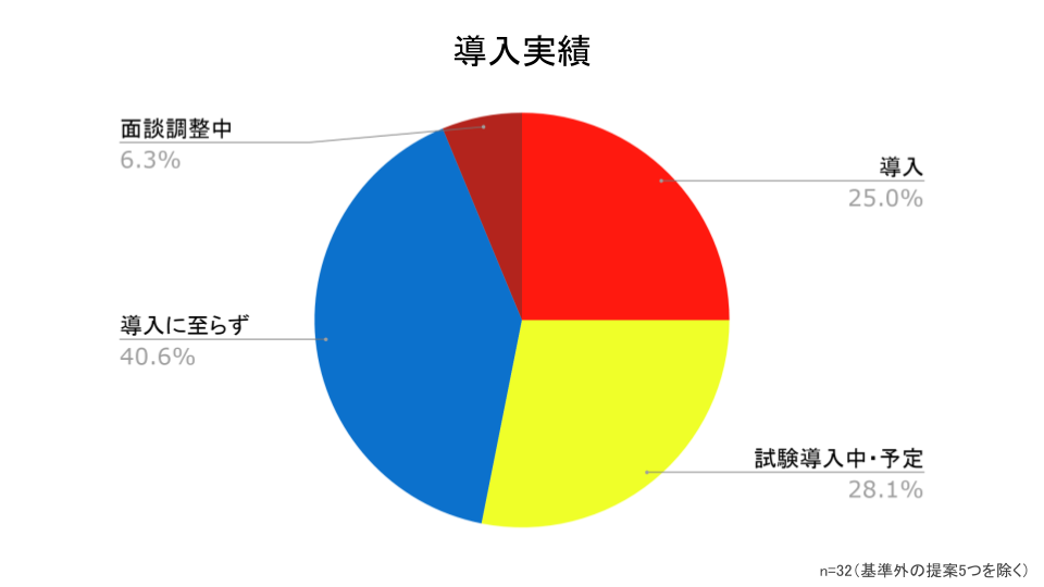 中間結果として、現時点では32社のスタートアップ企業から応募を受け、ほぼ全ての応募社と面談、その内の25.0%(8社)のサービスを導入いたしました。その他、採用には至らなかったサービスに関してはクライアント候補となる他企業をご紹介したり、ユーザベースグループの起業家とサポーターがつながるライブ配信サービス、「ami」に出演いただいたりするなど、幅広いかたちで支援を行っています。