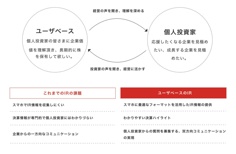ユーザベースは対話型コミュニケーションを重視した、新しいIRに挑戦します。