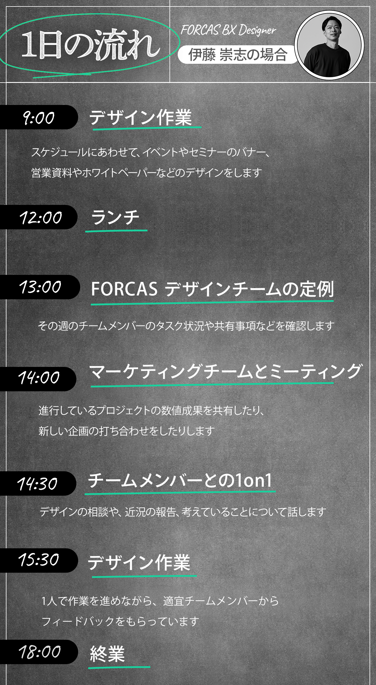 FORCASでは最近『BDR Innovation』『DX Leaders』『SaaS Exhibition』など、番組配信が多いので、番組で使用するスライド、バナー、映像などにクリエイティブを展開していきます。映像チームとコラボレーションしながら制作することが多いです。