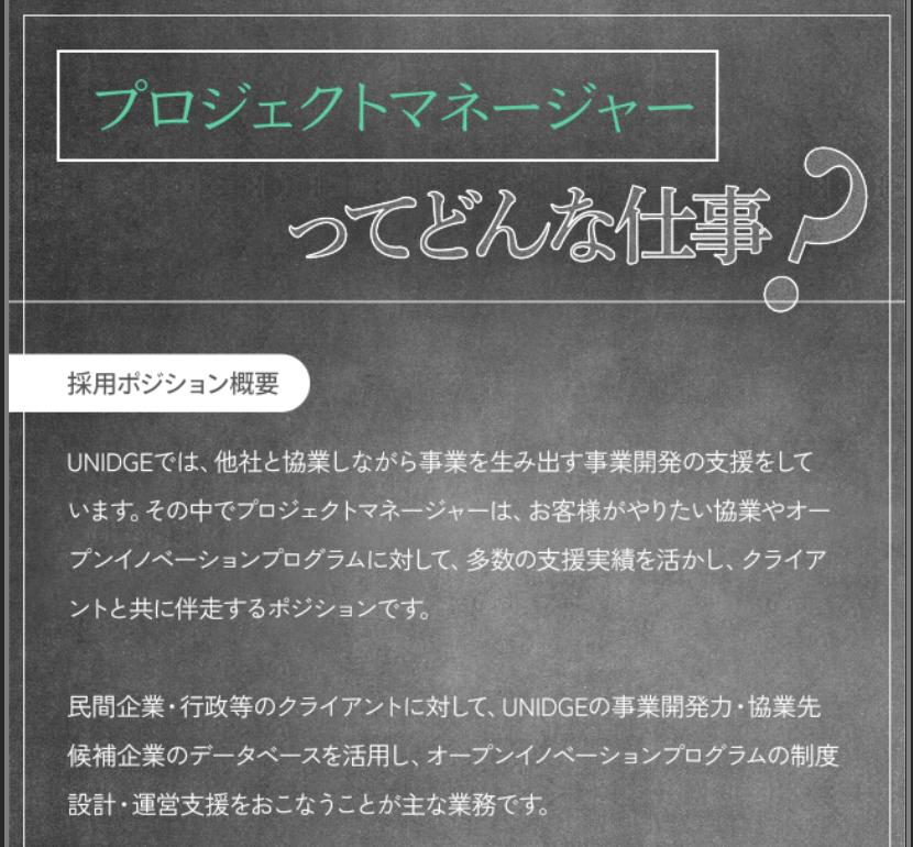 まずはオープンイノベーションについての深い理解が得られるということですね。さらには、プロジェクトマネージャーの仕事もやりつつ、そのノウハウを活かして自分自身も新規事業開発にチャレンジすることも可能です。