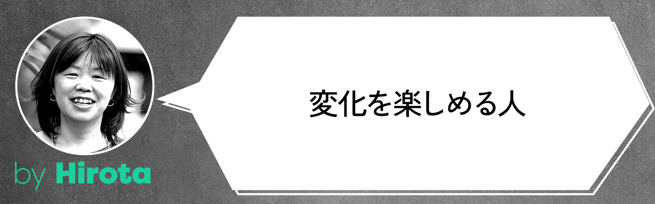 私は他の会社を経験していないので比較はできないのですが、ユーザベースって「変化し続ける会社」だと思うんですよ。なので、変化に対して否定的な人よりも、「おぉ!」と興味を持てる人が向いているんじゃないかなと思います。「変化さえも楽しめる力」というか。