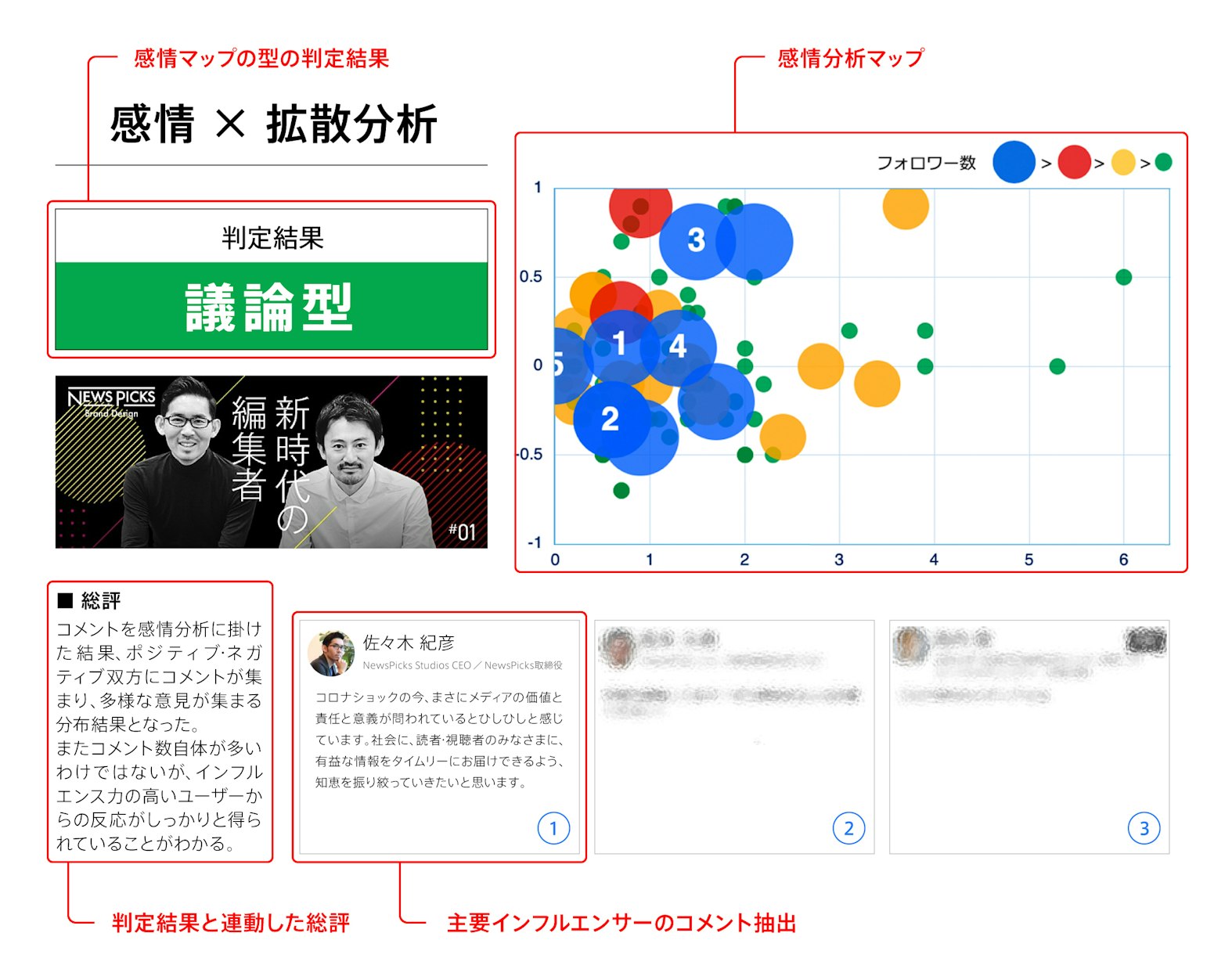 今後はそれらに加え、NewsPicks最大の特徴である「コメント機能」を駆使し、ユーザーのコメントを感情面からデータ分析・可視化した新たな指標「感情分析」をレポートに追加いたします。