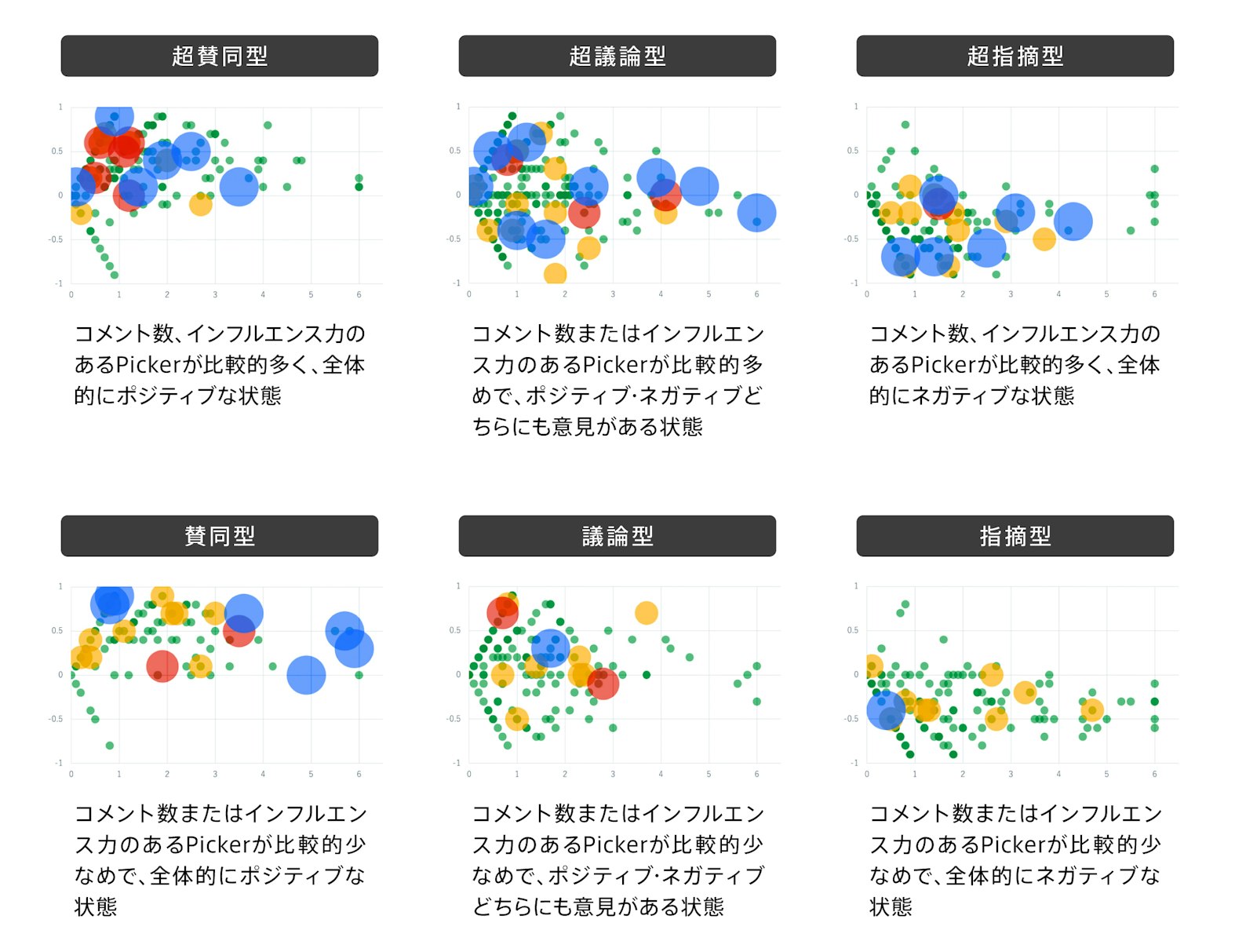 下記3つの要素を基に、コメントの全体傾向を合計6パターンに型化。
