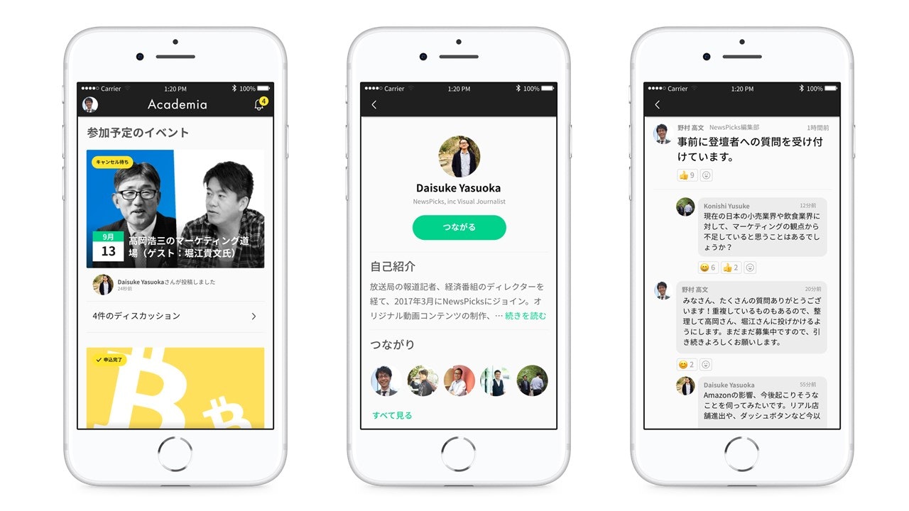 ユーザベースグループの株式会社ニューズピックスは、「つながる」機能と「学びを深める」機能を搭載したコミュニティアプリ「NewsPicksアカデミア」をリリースいたしました。本アプリは、2017年4月にスタートした月額5,000円の有料サービス「NewsPicksアカデミア」の会員専用アプリです。