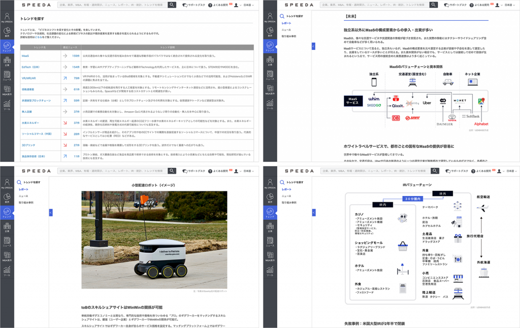With the release of SPEEDA Trends reports, users now have access to cutting-edge information on technological innovation and the latest business model shifts that was previously unavailable on the SPEEDA platform.